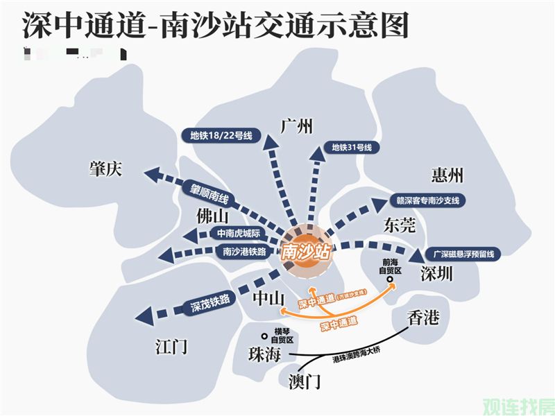 深中通道正式通车后,南沙将联通大湾区9+2城市群,快速到达深圳、中山、珠海等地区,尤其是能极限缩短到深圳前海、珠海横琴两个自贸区的时间。